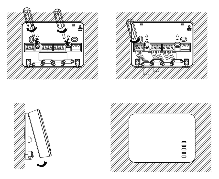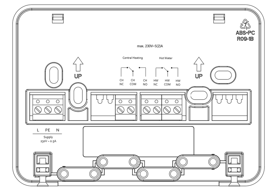 Connect the Live Neutral and Earth from the boiler (or existing thermostat supply) to the Live Neutral and Earth on the left side of the backplate.