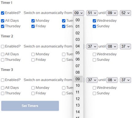 7 days, 6 periods each day (optional timers) or unlimited server timers |