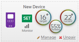 You can re-name the Temperature and Humidity Sensor by selecting Manage. On the page that appears, enter a new name and then select the