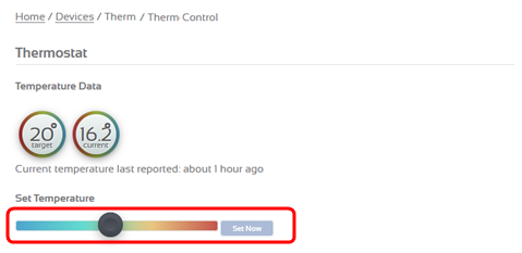 You can adjust the target temperature on the server by selecting the SET button on the device tile for the sensor:
