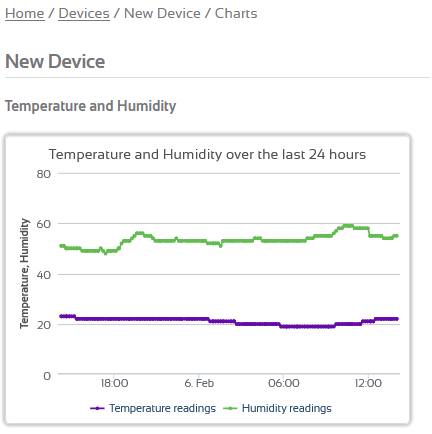 To view a historic log of temperature and humidity, select the Monitor option from the dashboard: